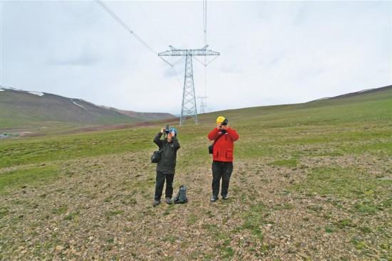 當(dāng)他們安全到達(dá)1395號(hào)鐵塔,王勝利拿出相機(jī)、望遠(yuǎn)鏡檢查導(dǎo)線、引流線等一系列重要部位,加措拿出接地電阻測(cè)量?jī)x對(duì)接地進(jìn)行測(cè)量,兩人忙而不亂,現(xiàn)場(chǎng)井然有序。