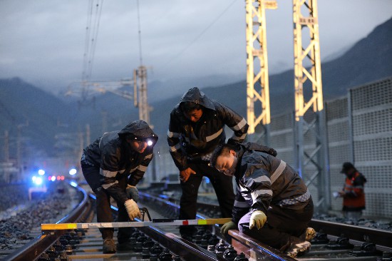 圖為中國(guó)鐵路青藏集團(tuán)有限公司拉薩基礎(chǔ)設(shè)施段工作人員在拉林鐵路沿線開(kāi)展隱患排查工作。