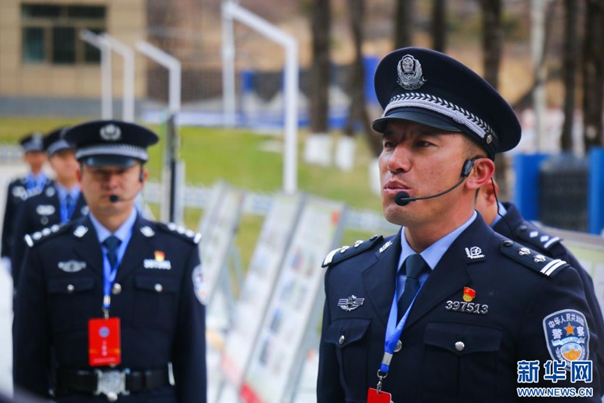 民警正在進(jìn)行當(dāng)?shù)毓ぷ髦v解(12月6日攝)。新華社記者 聶毅 攝