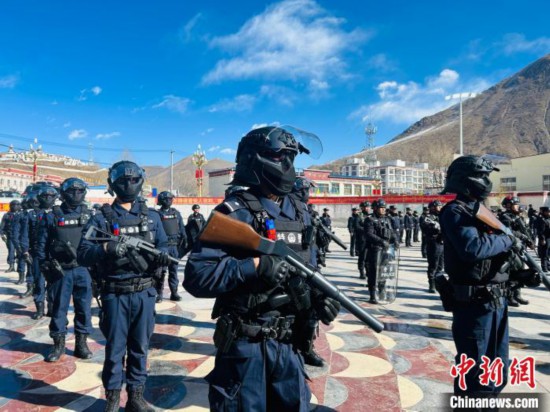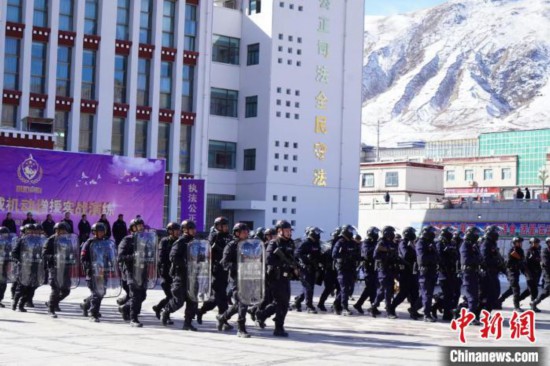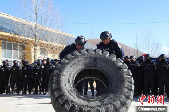 西藏那曲市公安特警29日在那曲市組織開展比武交流。