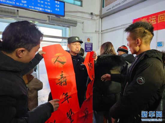 1月26日,在藏北高原零下20多攝氏度的那曲站,該站派出所民警按照上級安排部署,精心組織謀劃,凝聚全警力量,以“細致、精致、極致”的工作作風為萬千群眾平安出行保駕護航,通過開展志愿服務、法制知識宣傳、“寫春聯、送祝?!钡然顒樱e極營造“春運回家路、鐵警伴你行”的濃厚氛圍,讓廣大群眾在奔赴“回家”的路上更加暖心、安心、放心,不斷提升群眾安全感、幸福感和滿意度。