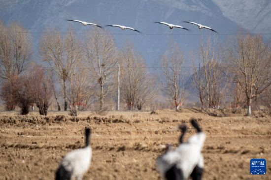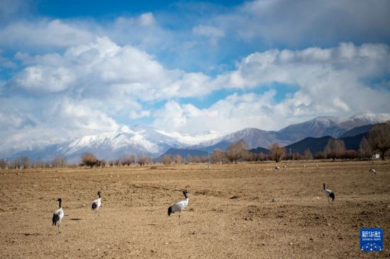 1月27日午后,一群黑頸鶴在陽(yáng)光下覓食,神態(tài)悠閑,惹人關(guān)注。黑頸鶴是國(guó)家一級(jí)保護(hù)動(dòng)物,主要棲息在海拔2500米至5000米的高原草甸、沼澤地帶。