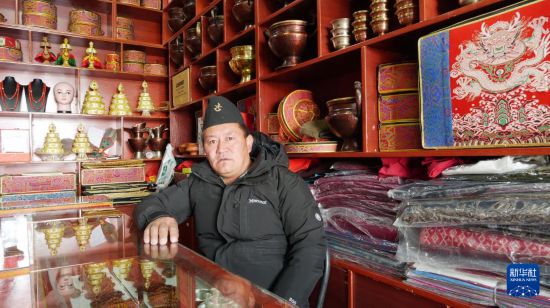 ??在普蘭縣唐嘎邊貿(mào)市場(chǎng)里經(jīng)商的尼泊爾籍商人米瑪(1月7日攝)。新華社記者 陳尚才 攝
