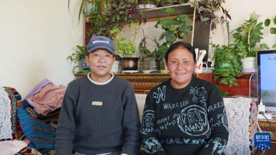??玉珍瑪和普布頓珠夫婦在普蘭縣客運(yùn)站門(mén)衛(wèi)室里合影(1月7日攝)。新華社記者 陳澤鵬 攝