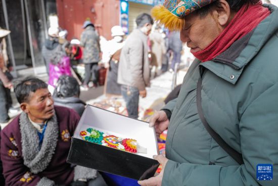 ??2月7日,在拉薩八廓商城,顧客在選購酥油花。新華社記者 孫瑞博 攝