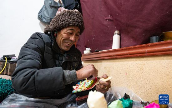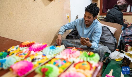 ??2月7日,在拉薩八廓商城,手工藝人在制作酥油花。新華社記者 丁增尼達(dá) 攝