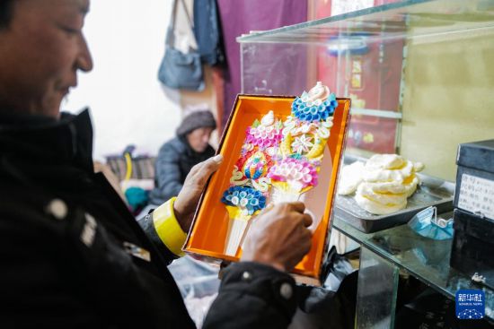 ??在拉薩八廓商城,制作完成的酥油花被放進(jìn)盒中存放(2月7日攝)。新華社記者 孫瑞博 攝