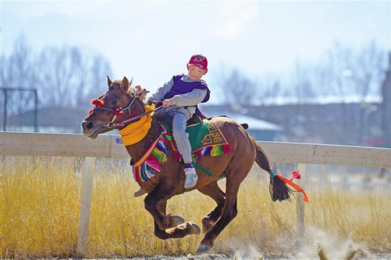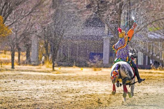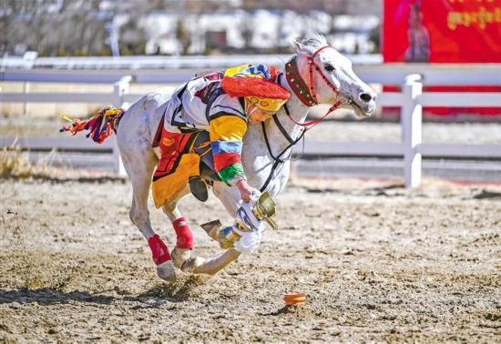 2月12日藏歷新年初三,主題為“體育大拜年,健康迎新春”的民族傳統(tǒng)馬術(shù)表演暨民族賽馬活動(dòng)在拉薩賽馬場(chǎng)舉行。