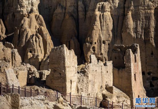 達巴遺址位于西藏阿里地區(qū)札達縣境內(nèi),其主要建筑分布在兩座山脊之上,整個遺址共有洞穴200余處,且有獨立的碉樓、寺廟建筑遺跡、居民窯洞等建筑,在白雪的映襯下,顯得格外雄渾而神秘。