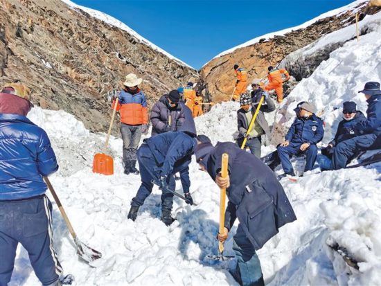 2022年10月底,洛扎縣突降大雪,農(nóng)牧民群眾的生命財產(chǎn)安全受到嚴(yán)重威脅,堅增羅布又一次向組織申請,主動前往自己熟悉的色鄉(xiāng)曲吉麥放牧點(diǎn)參與緊急救援工作。他在山谷中鏟雪、碎冰、清理河道,連續(xù)奮戰(zhàn)12天,竭力尋找失蹤牧民,成功轉(zhuǎn)運(yùn)200多頭牦牛,最大限度維護(hù)了群眾生命財產(chǎn)安全。