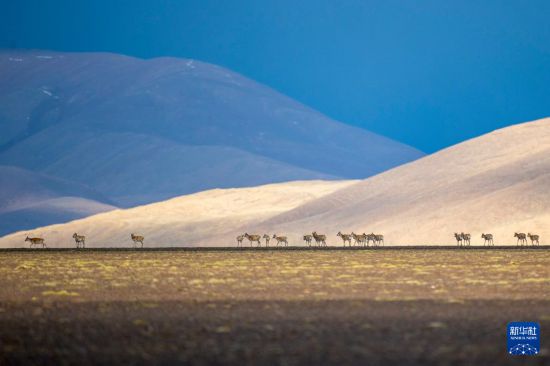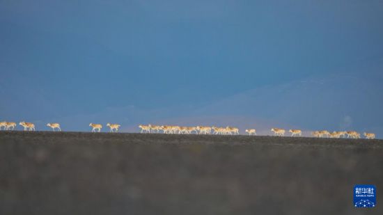6月13日傍晚,在羌塘國家級自然保護區(qū),一群藏羚羊在遷徙中。新華社記者 費茂華 攝