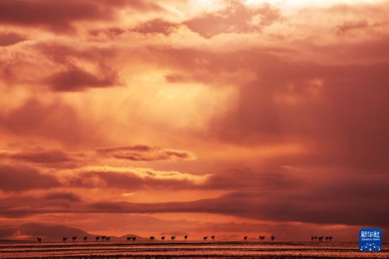 6月13日傍晚在羌塘國家級自然保護區(qū)拍攝的遷徙中的藏羚羊。新華社記者 費茂華 攝