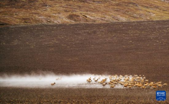 6月13日,在羌塘國家級自然保護區(qū),遷徙中的藏羚羊奔跑起來。新華社記者 費茂華 攝