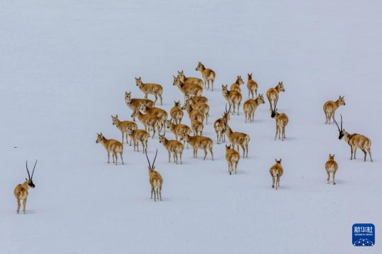 這是雪地中遷徙的藏羚羊(5月8日攝)。新華社記者 丁增尼達 攝