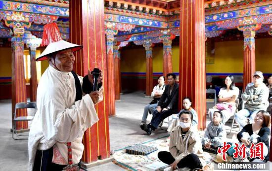8月17日,國家級非物質文化遺產“昌魯”的自治區(qū)級代表性傳承人次仁多吉在古建大院喜德林為觀眾帶來獨特的“聲”之體驗。中新社記者 李林 攝