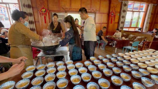 “目前店里紀(jì)錄保持在147碗?!痹诩{西民族鄉(xiāng)經(jīng)營(yíng)果拉叢農(nóng)家樂(lè)的果拉卓瑪說(shuō),“但生活再好也不能浪費(fèi)。我們會(huì)提醒客人,如果吃飽了,只需用筷子在碗上搭出尖尖,就會(huì)停止加面;但對(duì)于不搭筷子的客人,我們還會(huì)再勸一碗?!保ㄎ汗谟睢⒑钌劓?、沈曉朦)