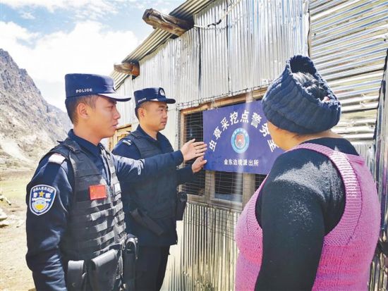 金東邊境派出所民警為群眾介紹蟲草采挖點警務(wù)室職能。 (本文配圖由本報通訊員 張力 記者 謝筱純 王珊 攝)