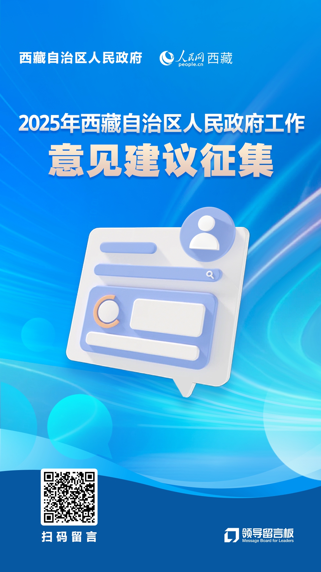 人民網(wǎng)拉薩10月15日電 (記者吳雨仁)民之所需、行之所至。為謀劃好2025年西藏自治區(qū)人民政府工作,起草好2025年《政府工作報告》,即日起,西藏自治區(qū)人民政府聯(lián)合人民網(wǎng)依托“領(lǐng)導(dǎo)留言板”開通政府工作征求意見欄,面向社會公開征集關(guān)于2025年政府工作的意見建議。