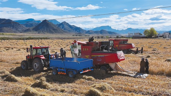林周縣村民在農(nóng)田里干農(nóng)活。林周縣融媒體供圖
