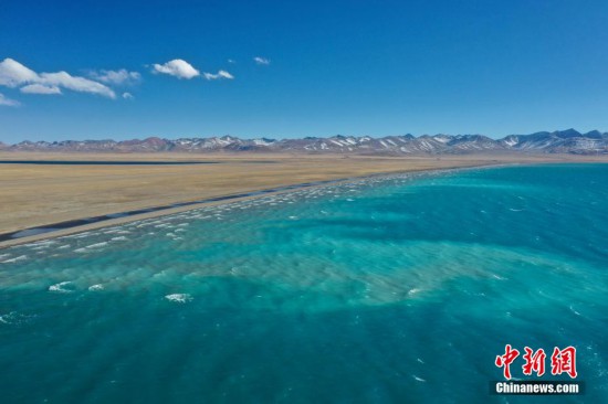 11月16日,西藏拉薩,由中國新聞社主辦的第二屆“瀾湄印象”中外媒體采風(fēng)活動團(tuán)隊(duì)來到納木錯,感受“天湖”的自然魅力。據(jù)了解,此次采風(fēng)活動有來自泰國、越南、柬埔寨等瀾湄國家的媒體代表。納木錯位于西藏自治區(qū)中部,拉薩當(dāng)雄和那曲班戈兩縣之間,是西藏第二大湖泊。初冬的納木錯碧波蕩漾,浪花卷云,不時(shí)有紅嘴海鷗掠過水面,景色迷人。圖為納木錯一角。(無人機(jī)照片)