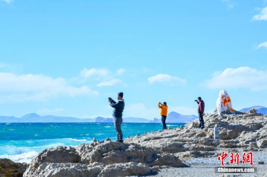 11月16日,西藏拉薩,由中國新聞社主辦的第二屆“瀾湄印象”中外媒體采風(fēng)活動團(tuán)隊(duì)來到納木錯,感受“天湖”的自然魅力。據(jù)了解,此次采風(fēng)活動有來自泰國、越南、柬埔寨等瀾湄國家的媒體代表。納木錯位于西藏自治區(qū)中部,拉薩當(dāng)雄和那曲班戈兩縣之間,是西藏第二大湖泊。初冬的納木錯碧波蕩漾,浪花卷云,不時(shí)有紅嘴海鷗掠過水面,景色迷人。圖為游客在納木錯湖畔游玩。