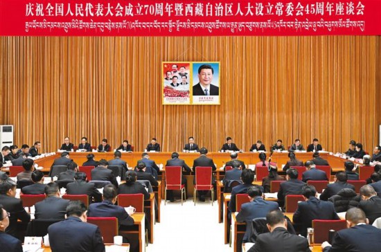 西藏自治區(qū)召開慶祝全國(guó)人民代表大會(huì)成立70周年暨西藏自治區(qū)人大設(shè)立常委會(huì)45周年座談會(huì)