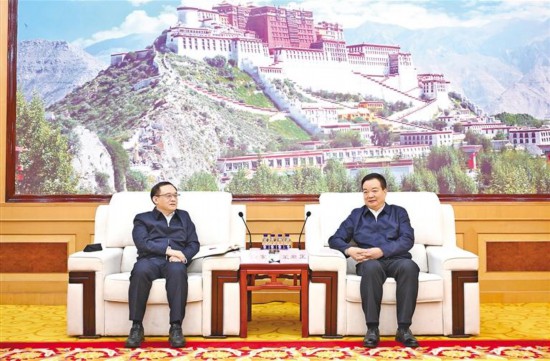近日,自治區(qū)黨委書記王君正在拉薩與中國(guó)鋁業(yè)集團(tuán)有限公司黨組書記、董事長(zhǎng)段向東一行座談。