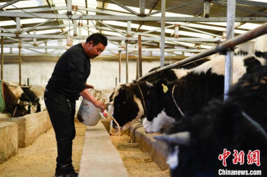 圖為村民強(qiáng)巴旦達(dá)在喂牛。趙朗 攝