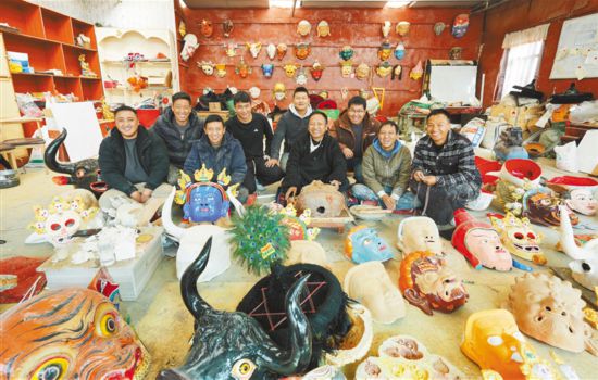 圖為合作社的工匠在制作西藏傳統(tǒng)面具。新華社記者 丁汀 攝