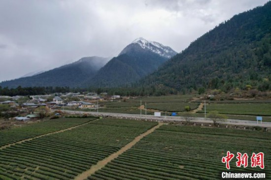 12月13日,西藏林芝波密縣易貢茶場雪山、茶田風(fēng)光。(無人機畫面)中新社記者 江飛波 攝