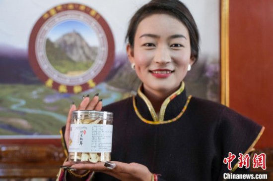 12月12日,西藏林芝工布江達縣巴河鎮(zhèn)白瑪康珠展示當(dāng)?shù)睾献魃缂庸さ乃扇桩a(chǎn)品。中新社記者 江飛波 攝