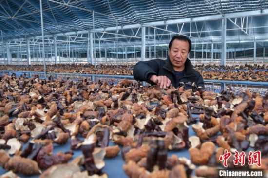 12月10日,西藏林芝米林市米林鎮(zhèn)紅太陽科技示范家庭農(nóng)場負責(zé)人尼瑪查看靈芝風(fēng)干情況。中新社記者 江飛波 攝