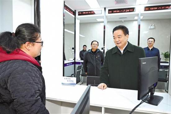 12月16日,自治區(qū)黨委書(shū)記王君正來(lái)到自治區(qū)信訪局調(diào)研并現(xiàn)場(chǎng)接待來(lái)訪群眾。這是王君正在接訪大廳了解相關(guān)工作情況。記者 李洲 攝