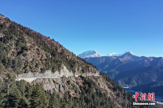 12月17日,西藏自治區(qū)林芝市色季拉山上的川藏公路。林芝被譽為“雪域江南”,境內雪山巍峨、峽谷幽深、森林廣布,生態(tài)環(huán)境極為純凈,兼具山、水、林、草、湖、雪、冰之美,是絕佳的旅游勝地。也是川藏公路上風光最美的一段。(無人機照片)中新社記者 貢嘎來松 攝