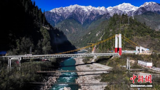 12月17日,西藏自治區(qū)林芝市波密縣境內的通麥大橋。林芝被譽為“雪域江南”,境內雪山巍峨、峽谷幽深、森林廣布,生態(tài)環(huán)境極為純凈,兼具山、水、林、草、湖、雪、冰之美,是絕佳的旅游勝地。也是川藏公路上風光最美的一段。(無人機照片)中新社記者 貢嘎來松 攝