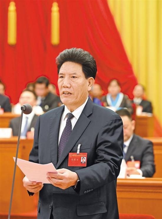西藏自治區(qū)第十二屆人民代表大會(huì)第三次會(huì)議19日上午在拉薩開(kāi)幕。根據(jù)會(huì)議議程,自治區(qū)代理主席嘎瑪澤登代表自治區(qū)人民政府向大會(huì)作政府工作報(bào)告。 記者 潘多 攝