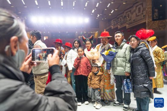 演出結(jié)束后小演員們與家人合影留念(2月11日攝)。新華社記者 丁增尼達(dá) 攝