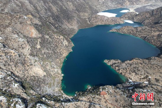2月16日,位于西藏昌都市邊壩縣的“三色湖”在群山環(huán)抱中景色壯美?!叭庇珊诤?、白湖、黃湖組成,群山環(huán)抱中的三處相鄰湖泊在陽光下分別呈現(xiàn)不同色彩。圖為三色湖景色。(無人機(jī)照片)中新社記者 李林 攝