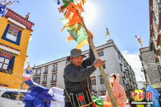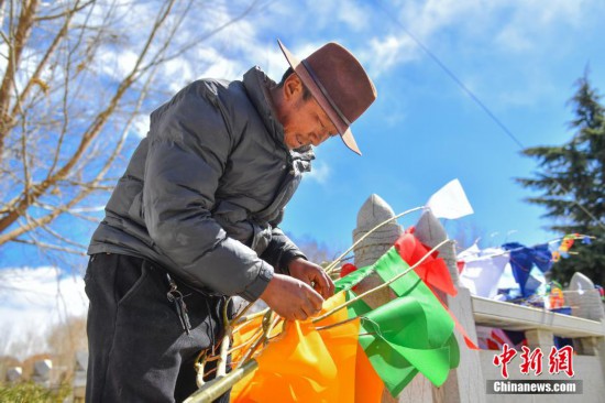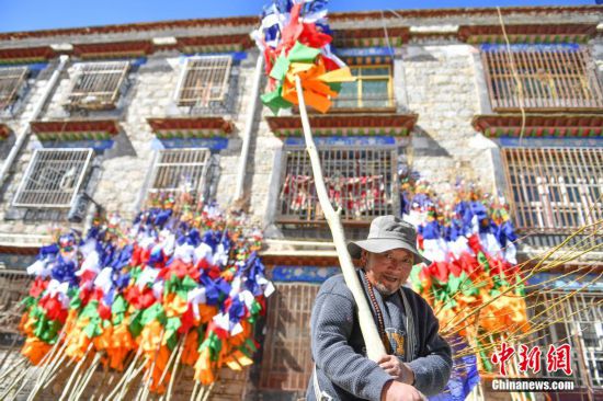 縫制五彩經(jīng)幡年味漸濃 拉薩迎藏歷新年