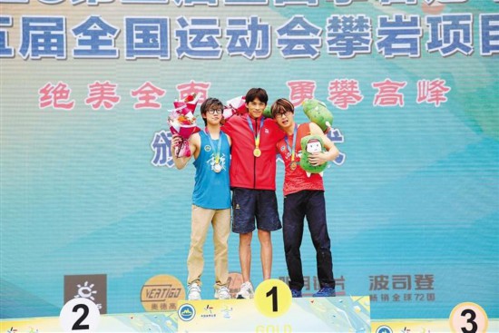 經(jīng)過(guò)激烈角逐,我區(qū)運(yùn)動(dòng)員共獲得第十五屆全國(guó)運(yùn)動(dòng)會(huì)攀巖項(xiàng)目6個(gè)參賽資格,桑珠尼瑪獲得男子兩項(xiàng)全能項(xiàng)目冠軍。(鄭璐 明吉)