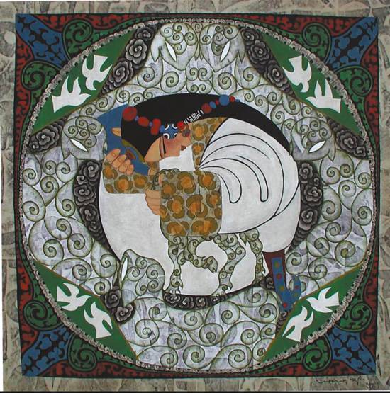 圖為昂桑的作品《藏女與花》。