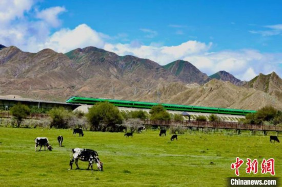 圖為復(fù)興號動車組列車奔馳在西藏拉日鐵路線上。馬生明 攝