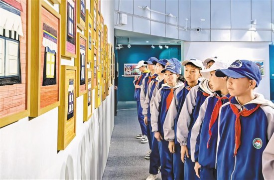圖為5月20日,在自治區(qū)群藝館,來自墨竹工卡縣中學(xué)的學(xué)生欣賞手工作品。記者 洛桑 攝