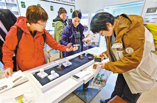 市民游客在西藏博物館內(nèi)選購文創(chuàng)產(chǎn)品。