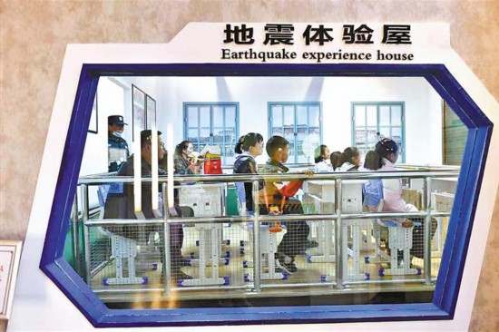小朋友們在西藏自然科學(xué)博物館地震體驗(yàn)屋體驗(yàn)?zāi)M震級。