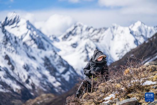 五月雖已入夏,但索縣西昌鄉(xiāng)山間的白雪尚未消融。清晨,牧民們腰系布袋、手持小鋤上山采挖蟲草。蟲草露出地面的暗棕色芽尖很小,人們便匍匐在高山草甸間,一寸一寸尋覓蟲草的蹤跡。