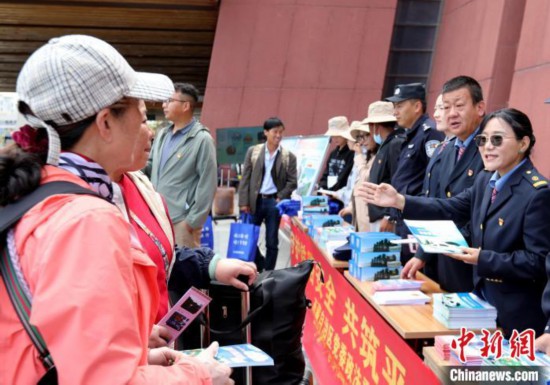 圖為中國(guó)鐵路青藏集團(tuán)有限公司拉薩車站組織開展“知路愛路護(hù)路 共筑平安鐵路”主題宣傳活動(dòng)現(xiàn)場(chǎng)。旦增旺姆 攝
