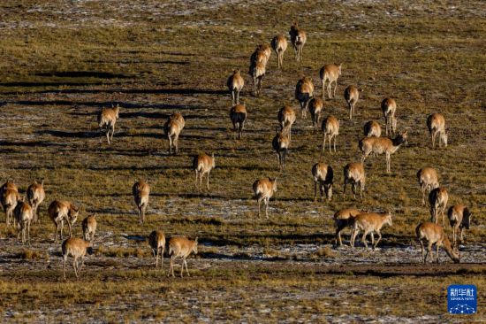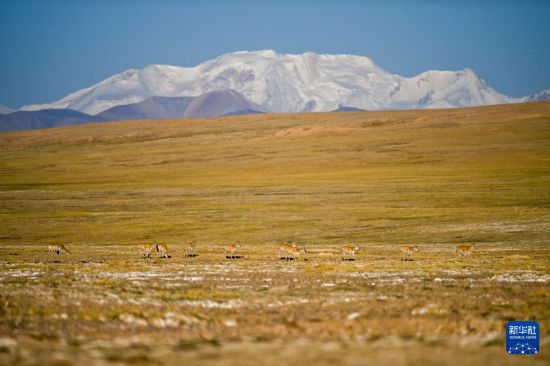 在羌塘國(guó)家級(jí)自然保護(hù)區(qū)核心區(qū)拍攝到的雌性藏羚羊群(6月10日攝)。新華社記者 旦增尼瑪曲珠 攝