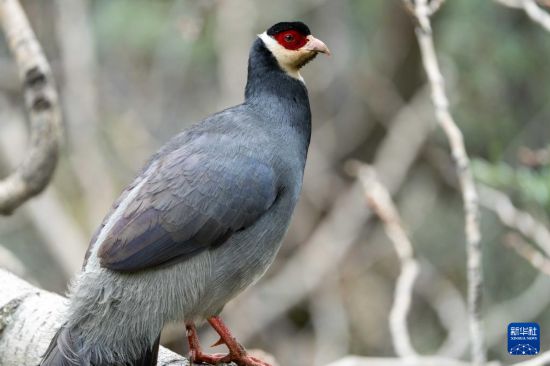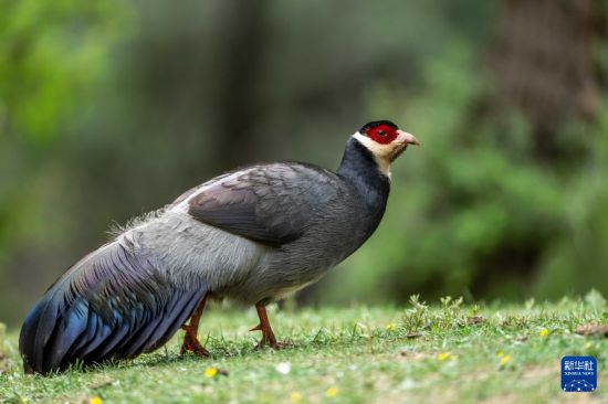 一只藏馬雞在林間覓食(6月17日攝)。新華社記者 旦增尼瑪曲珠 攝