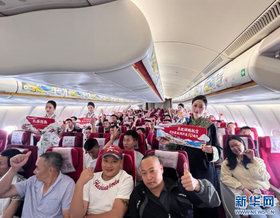 20日,祥鵬航空8L9669航班乘務(wù)員與旅客合照。(受訪者供圖)